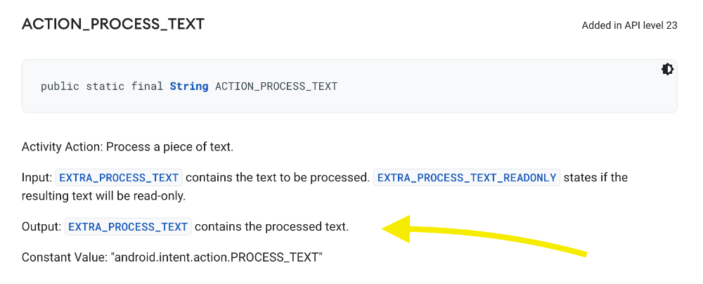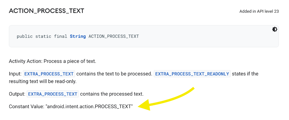 <action android:name="android.intent.action.PROCESS_TEXT" />