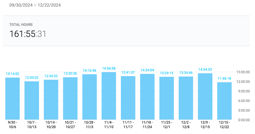 - 161 hours 55 minutes 31 seconds
