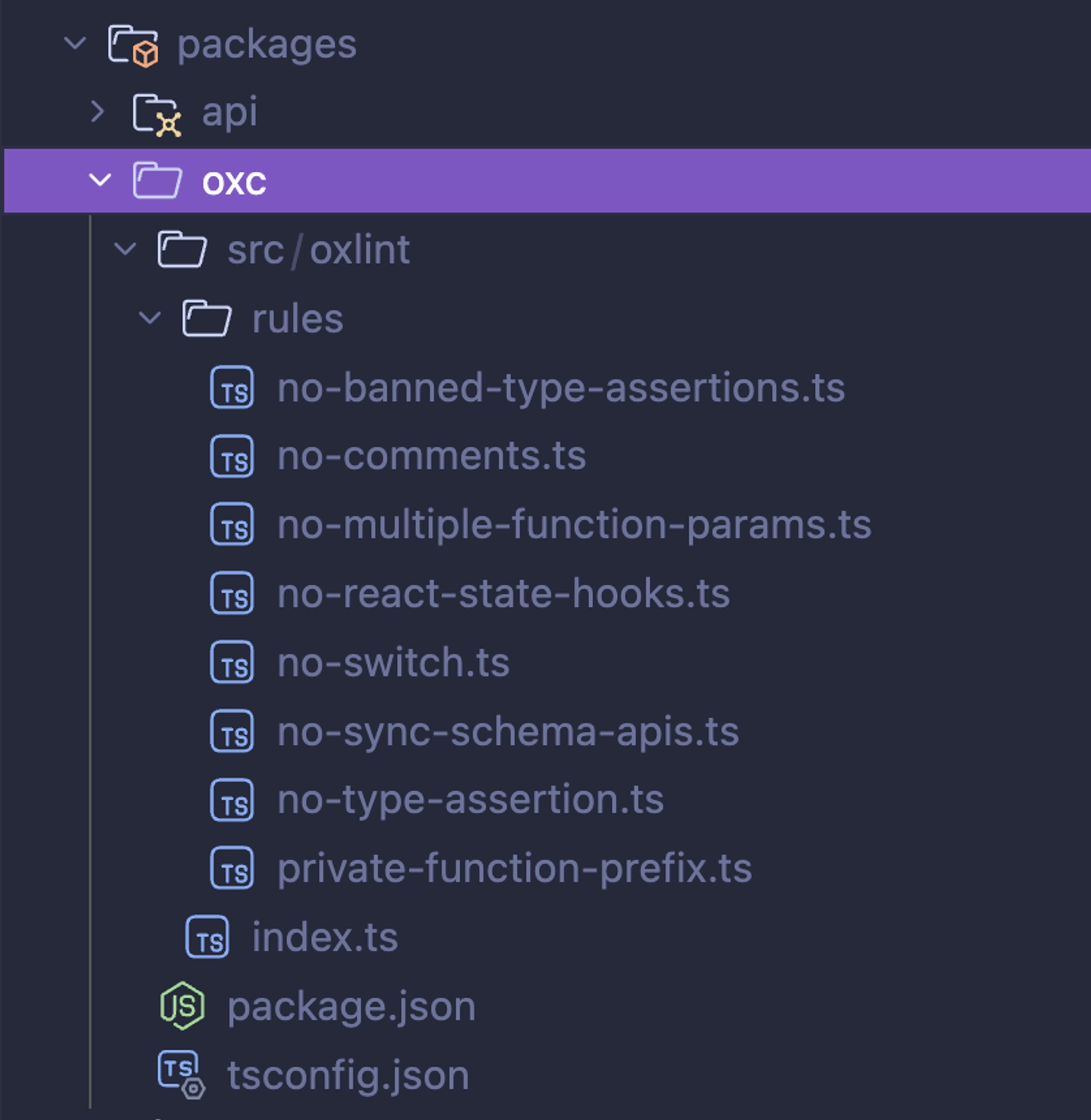 I have a packages/oxc package in my monorepos where all the linting rules are implemented and provided.