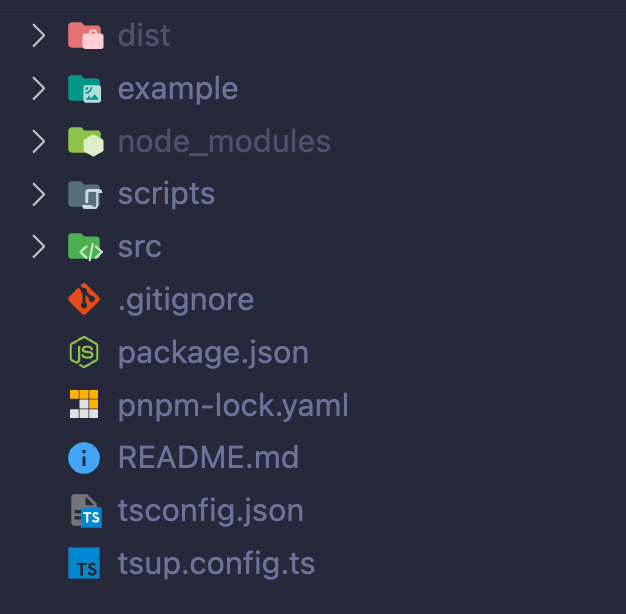 package.jsontsconfig.jsonsrccontainingtsfiles- Extra configurations (if needed) and generated folders