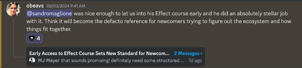 Alert: Learning to use @EffectTS_ will soon become an insane unfair advantage π‘ Using effect libraries (cluster, effect-http, rpc, sql) makes even hard tasks easier and faster to implement and maintain Going x10 faster with also better codeΒ Show more