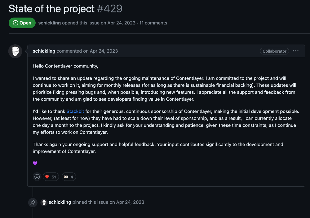 The same can be said for open source projects: they require continuos improvements and support π οΈ